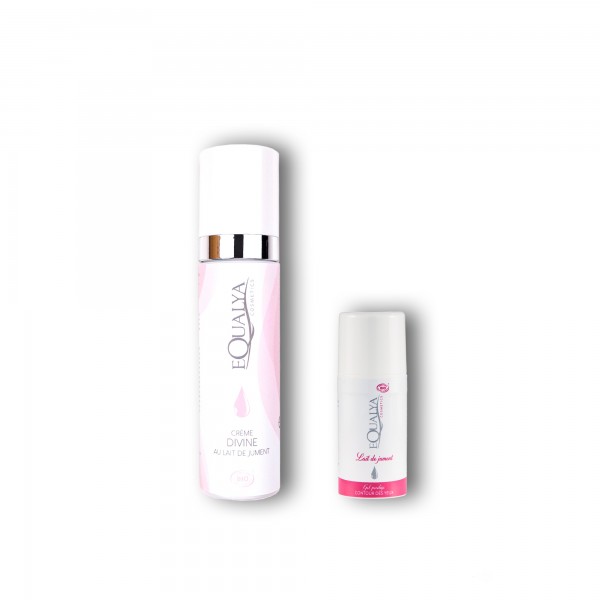 Ce duo est idéal pour faire découvrir les bienfaits du lait de jument Bio! Un cadeau qui fera plaisir à coup sûr! - 1 crème mains - 1 savon au choix (Savon Intense aux notes agrumes / Savon Douceur aux notes florales de roses) Présenté dans un joli pochon naturel en fils de coton Bio